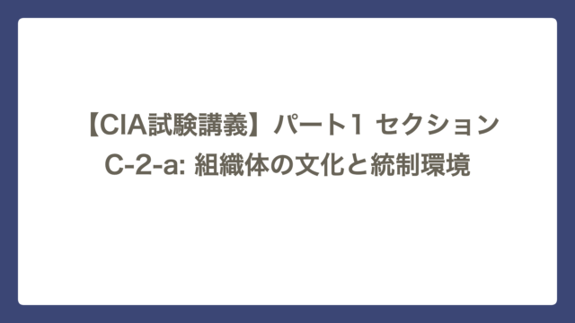 セクションC 【CIA試験講義】パート1 セクションC-2-a: 組織体の文化と統制環境 CIA Lab テーマ:枯れた土壌に花は咲かない ~文化と統制環境の関係~ セクションC-2-aは、組織を支える「見えない土台」についての理解です。 …