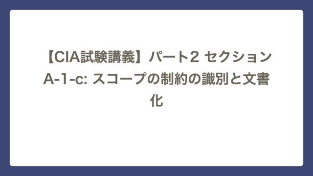セクションA 【CIA試験講義】パート2 セクションA-1-c: スコープの制約の識別と文書化 CIA Lab テーマ:旅行計画と「立入禁止区域」 ~「できないこと」を明確にする勇気~ セクションA-1-cは、内部監査の計画段階において、監査の …