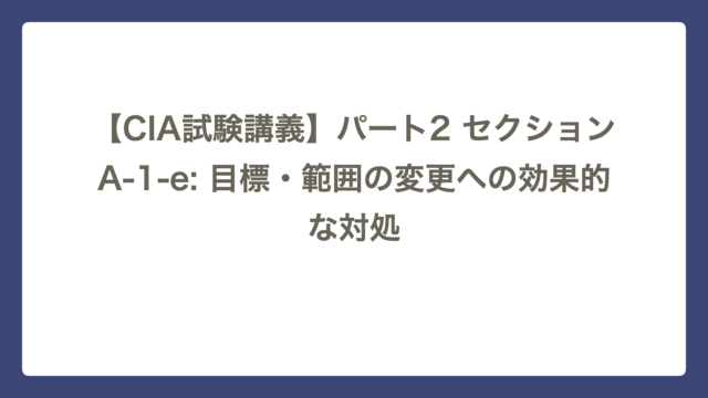 セクションA 【CIA試験講義】パート2 セクションA-1-e: 目標・範囲の変更への効果的な対処 CIA Lab テーマ:カーナビの「リルート(経路変更)」 ~予期せぬ工事にどう対応するか~ セクションA-1-eは、監査の実施中に「当初の計画通り …