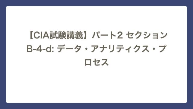 セクションB 【CIA試験講義】パート2 セクションB-4-d: データ・アナリティクス・プロセス CIA Lab テーマ:料理の手順で覚える「データ分析の5ステップ」 セクションB-4-dは、データ・アナリティクス(DA)を単なる「ツール操作」で …