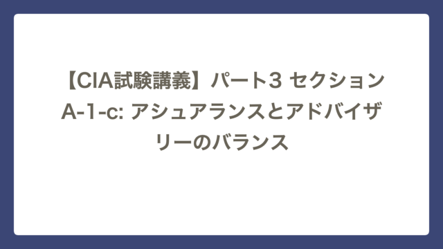 セクションA 【CIA試験講義】パート3 セクションA-1-c: アシュアランスとアドバイザリーのバランス CIA Lab テーマ:ブレーキとアクセルの使い分け ~「守り」と「攻め」の最適配分~ セクションA-1-cは、内部監査部門が持つ限られたリソース( …