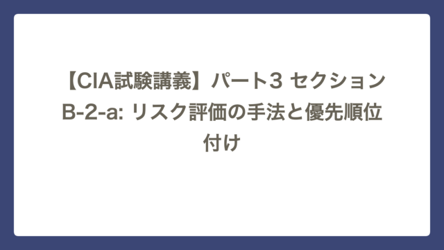 セクションB 【CIA試験講義】パート3 セクションB-2-a: リスク評価の手法と優先順位付け CIA Lab テーマ:救急救命室(ER)のトリアージ ~限りある資源をどこに投入するか~ セクションB-2-aは、監査計画策定の心臓部です。 内部 …