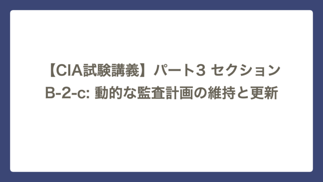 セクションB 【CIA試験講義】パート3 セクションB-2-c: 動的な監査計画の維持と更新 CIA Lab テーマ:コースが変わるマラソン ~「動的(Dynamic)」な計画管理~ セクションB-2-cは、一度作った監査計画を「石に刻まれた …