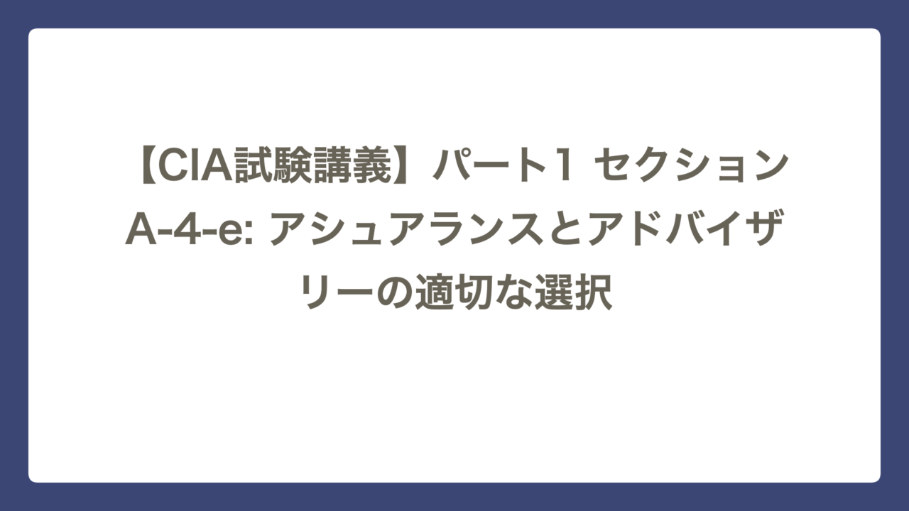 これまで、アシュアランス(保証)とアドバイザリー(助言)の定義と違いを学んできました。 試験の本番で問われるのは、知識そのものではなく、「具体的なシナリオ(状況)において、どちらの帽子をかぶるのが適切かを判断する能力」です。