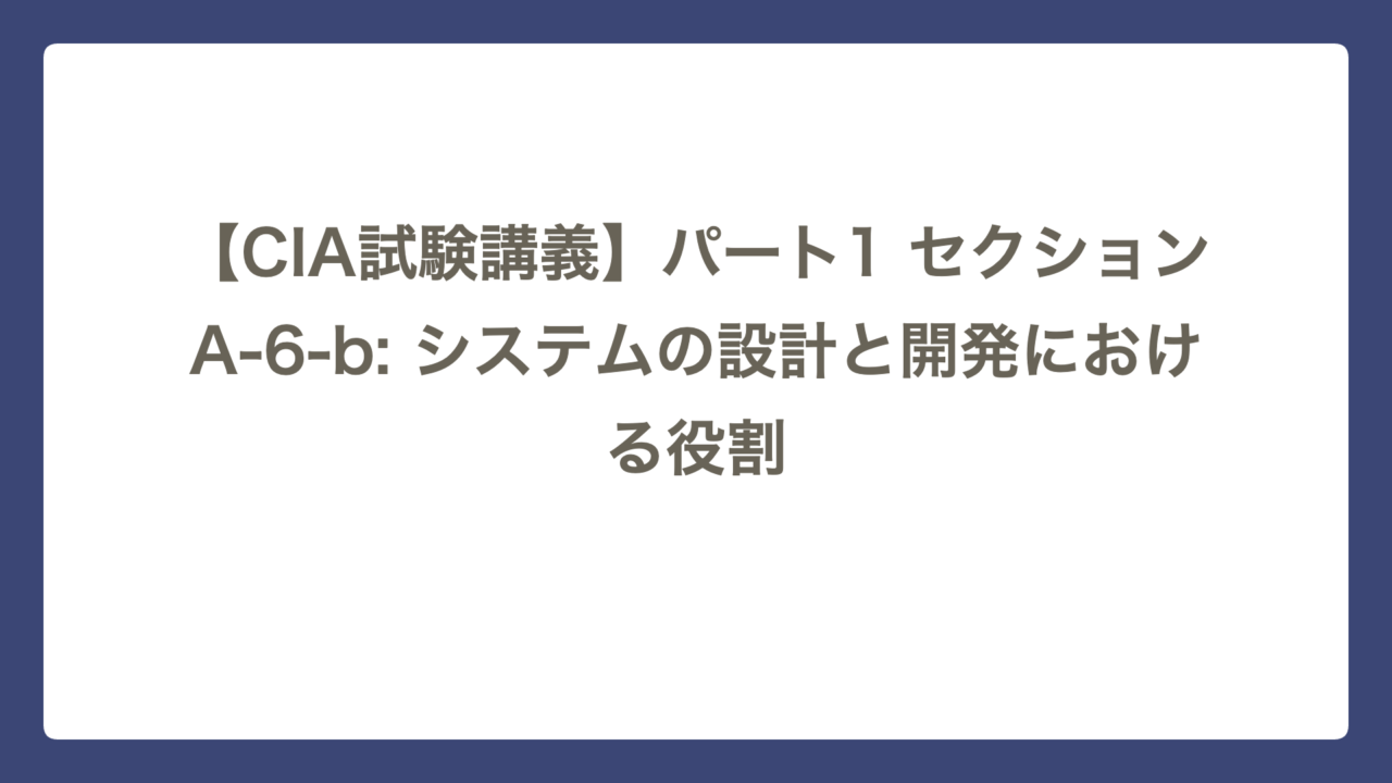 【CIA試験講義】パート1 セクションA-6-b: システムの設計と開発における役割