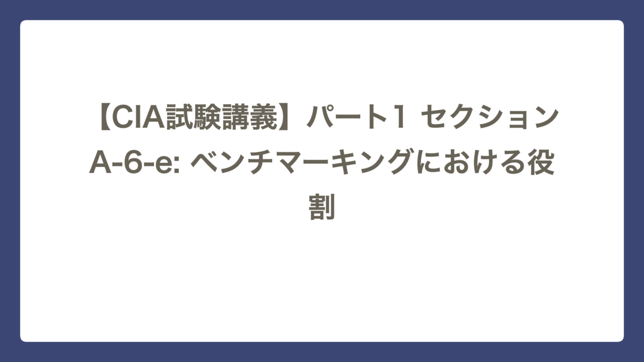 【CIA試験講義】パート1 セクションA-6-e: ベンチマーキングにおける役割