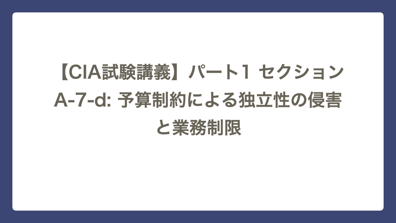【CIA試験講義】パート1 セクションA-7-d: 予算制約による独立性の侵害と業務制限