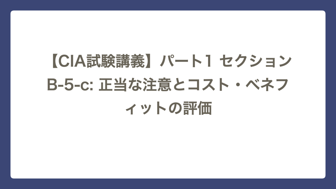 【CIA試験講義】パート1 セクションB-5-c: 正当な注意とコスト・ベネフィットの評価