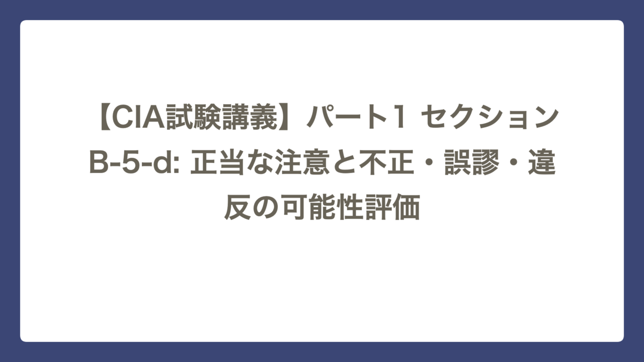 【CIA試験講義】パート1 セクションB-5-d: 正当な注意と不正・誤謬・違反の可能性評価