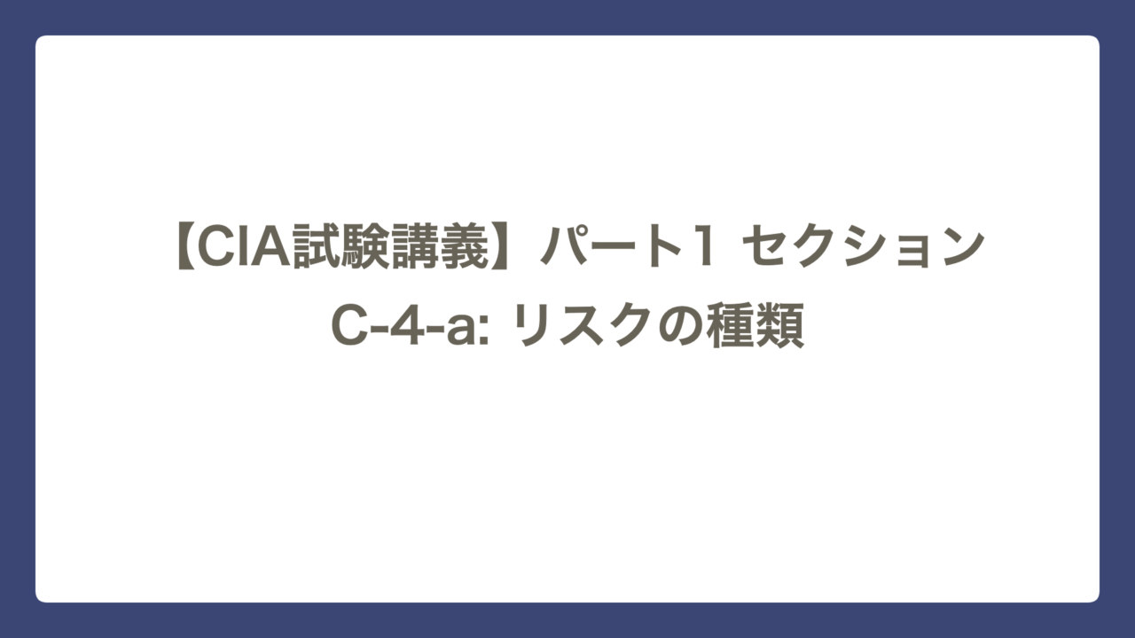 【CIA試験講義】パート1 セクションC-4-a: リスクの種類