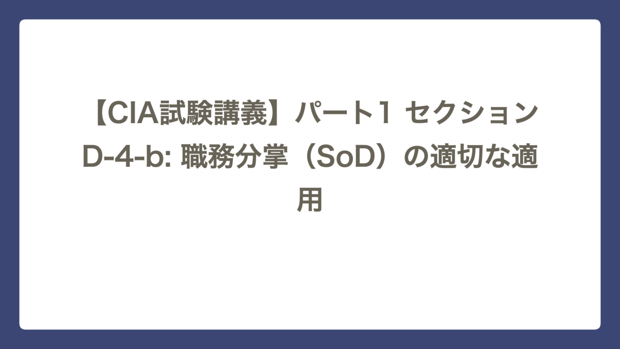 セクションD-4-bは、内部統制の中で最も基本的かつ強力な概念である「職務分掌(Segregation of Duties: SoD)」に関するパートです。