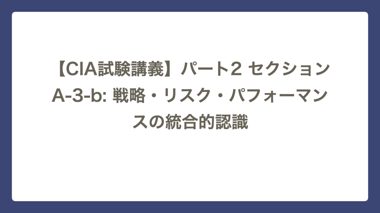 【CIA試験講義】パート2 セクションA-3-b: 戦略・リスク・パフォーマンスの統合的認識