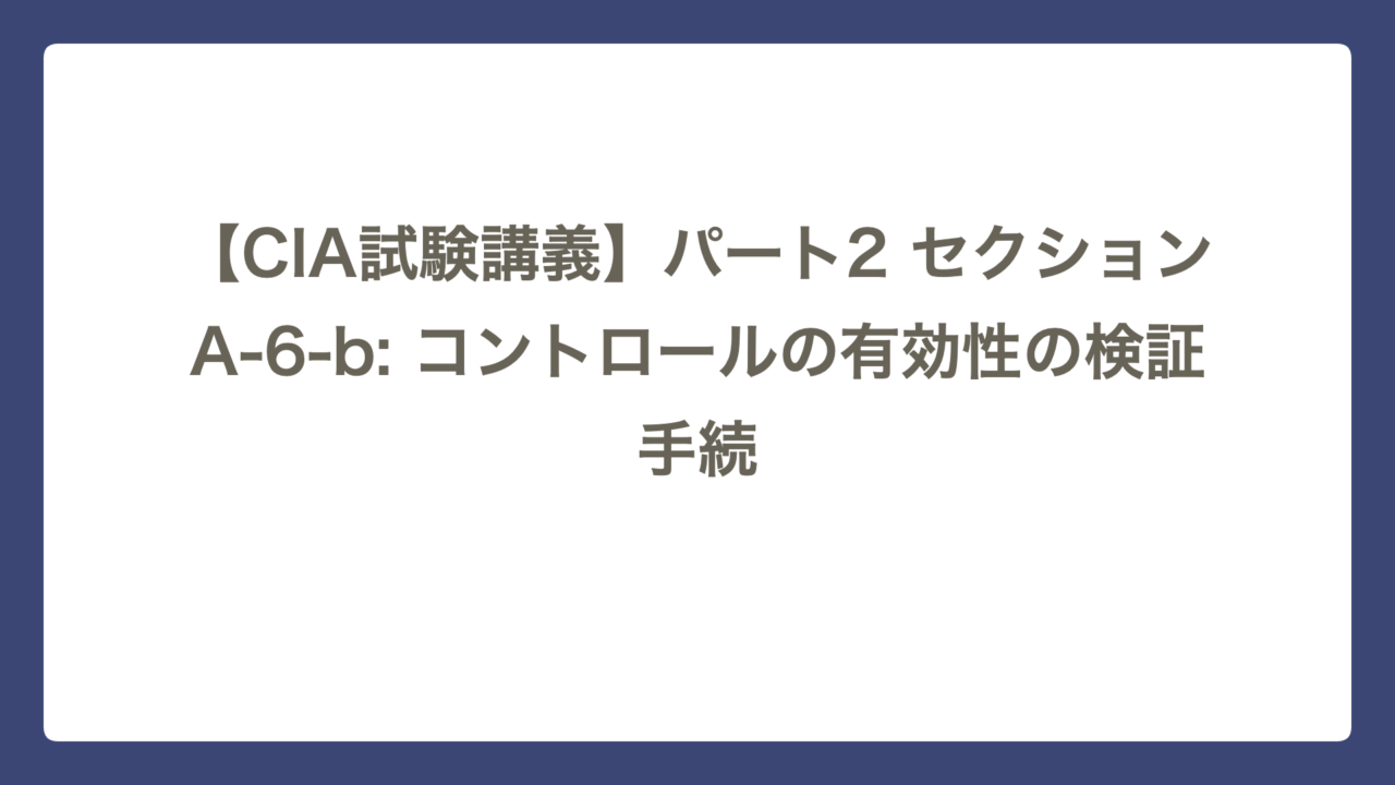 【CIA試験講義】パート2 セクションA-6-b: コントロールの有効性の検証手続