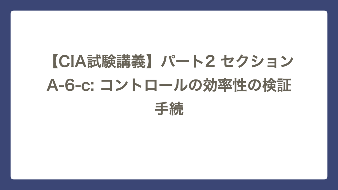 セクションA-6-cは、コントロールがリスクを低減できているか(有効性)だけでなく、「そのコントロールにかかるコストや手間が見合っているか(Efficiency)」を検証する手続に関するトピックです。