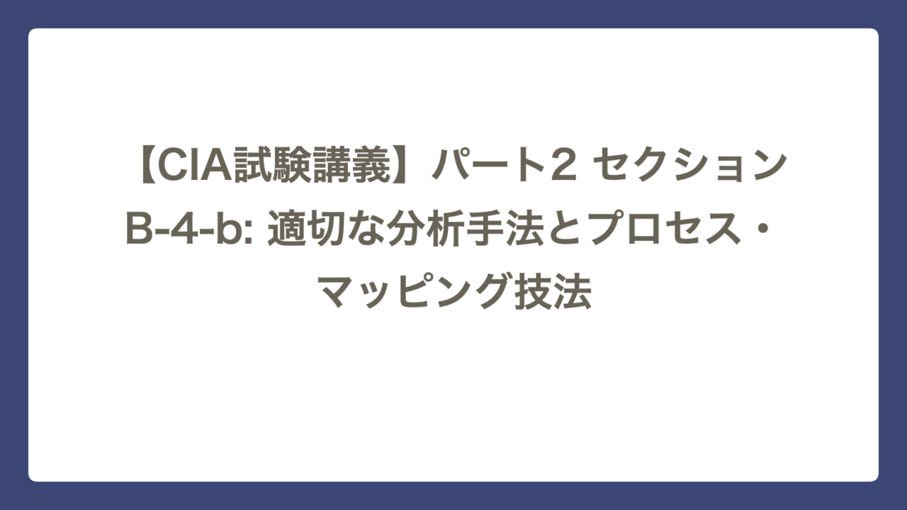 【CIA試験講義】パート2 セクションB-4-b: 適切な分析手法とプロセス・マッピング技法