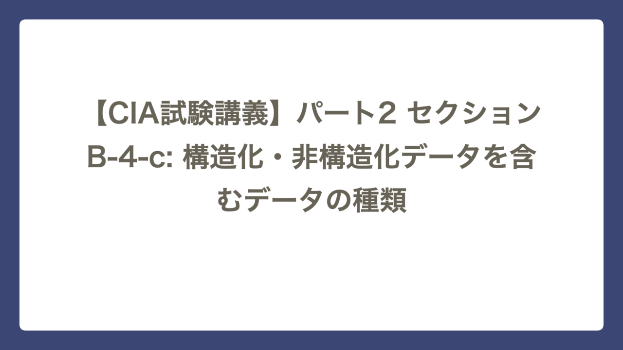 【CIA試験講義】パート2 セクションB-4-c: 構造化・非構造化データを含むデータの種類