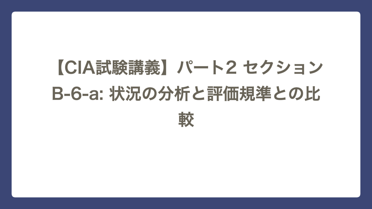 【CIA試験講義】パート2 セクションB-6-a: 状況の分析と評価規準との比較