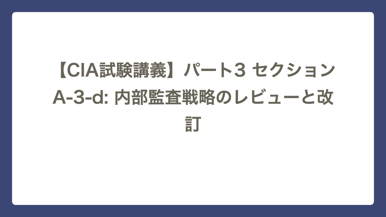 【CIA試験講義】パート3 セクションA-3-d: 内部監査戦略のレビューと改訂