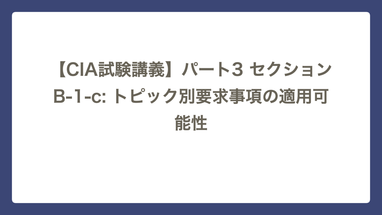 【CIA試験講義】パート3 セクションB-1-c: トピック別要求事項の適用可能性
