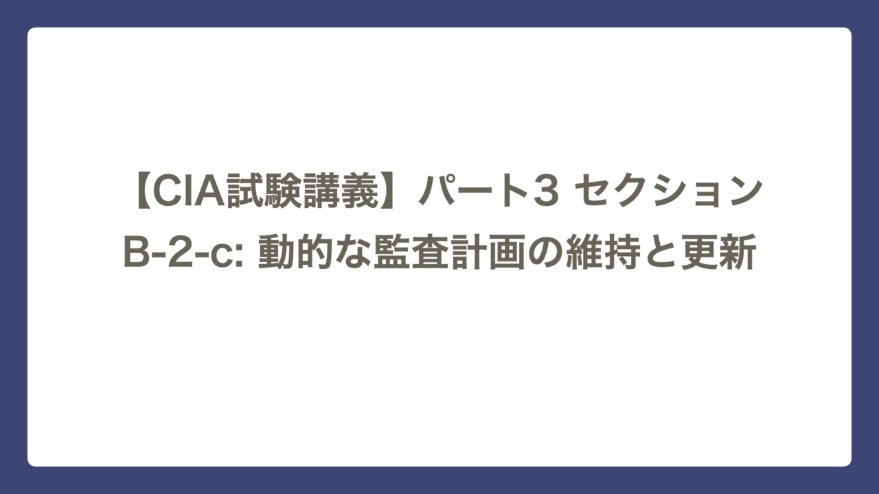 セクションB-2-cは、一度作った監査計画を「石に刻まれた動かせないもの」として扱うのではなく、状況の変化に合わせて柔軟に書き換える「動的(Dynamic)な計画」の重要性と、そのトリガー(きっかけ)について学ぶセクションです。