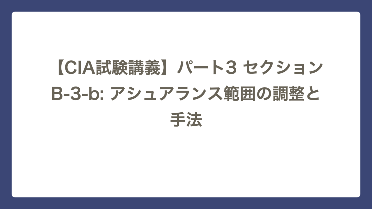 【CIA試験講義】パート3 セクションB-3-b: アシュアランス範囲の調整と手法