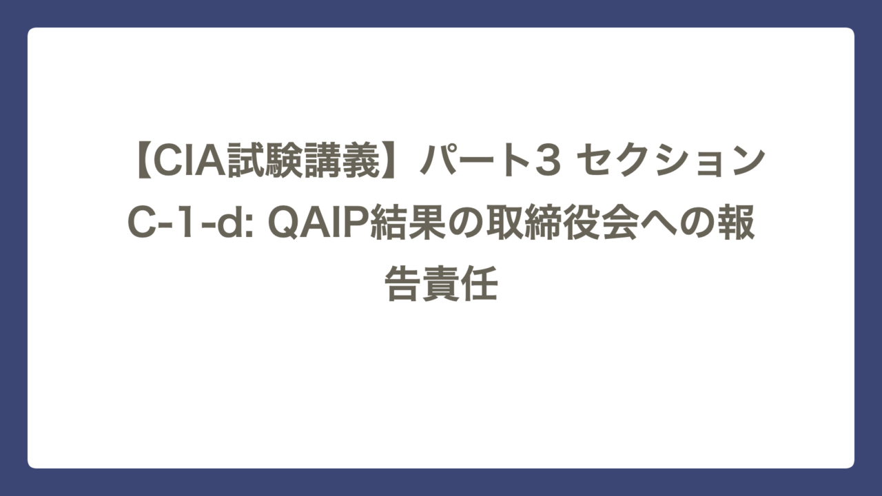 セクションC-1-dは、QAIP(品質のアシュアランスと改善のプログラム)を実施した後、その結果を誰に、何を、どのように伝えるべきかという、CAE(内部監査部門長)の報告責任に関するセクションです。