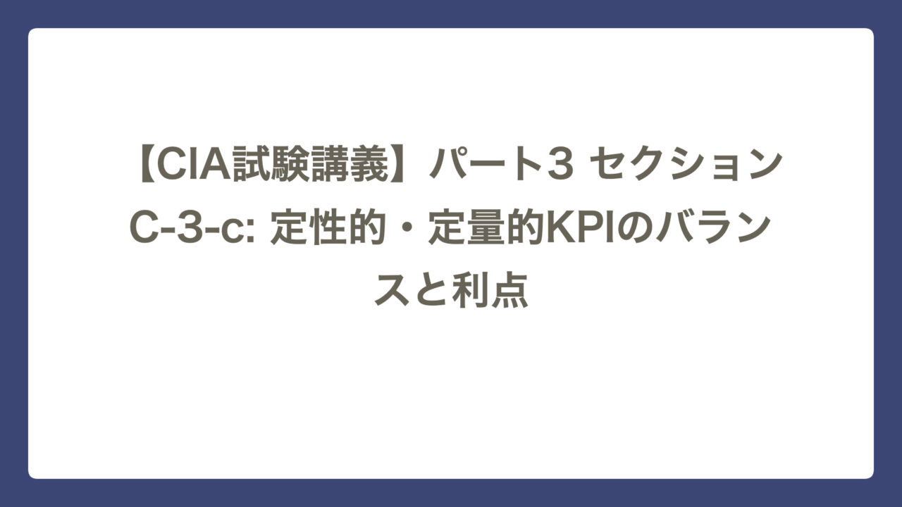 【CIA試験講義】パート3 セクションC-3-c: 定性的・定量的KPIのバランスと利点