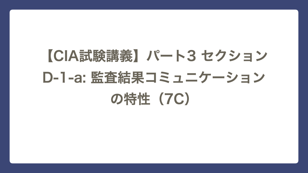 セクションD-1-aは、内部監査の結果(報告書)を作成する際に遵守すべき「品質の特性」に関する定義です。