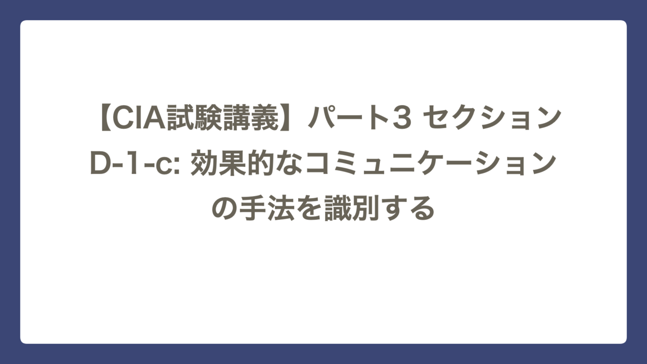 【CIA試験講義】パート3 セクションD-1-c: 効果的なコミュニケーションの手法を識別する